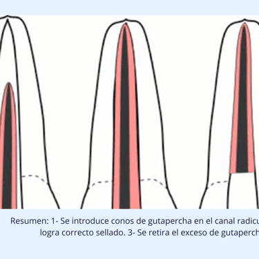 Relleno y Sellado: El conducto limpio se rellena con gutapercha, un material biocompatible, y se sella para prevenir reinfecciones.